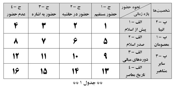ج) دستهبندی محتوای «نمایش معارفی» از لحاظ کیفیت حضور شخصیتهای معارفی در آن