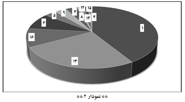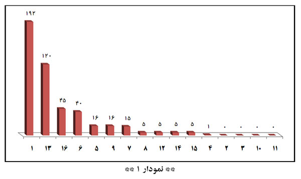 همانطور که در «نمودار ۱» مشخص شده است گونهی ۱ و ۱۳ با بیشترین فراوانی اختلاف زیادی با سایر گونهها دارند و بعد از آنها گونههای ۱۶ و ۶ پر تکرارترین گونهها هستند.