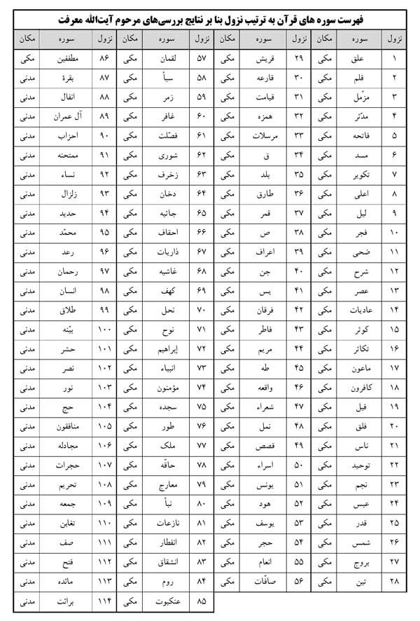 الف) یافتن ترتیب نزول سورهها: